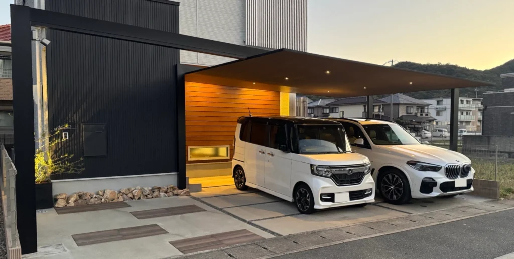 車と趣味の道具を雨から守る。暮らしの幅を広げるスタイリッシュな空間。