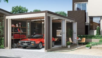 車と趣味の道具を雨から守る。暮らしの幅を広げるスタイリッシュな空間。