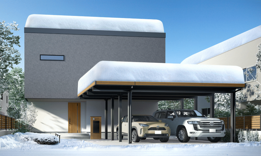 2台の車を1mの積雪の重圧から守る。朝のゆとりを生み出す、本格的雪国仕様のスタンダード。