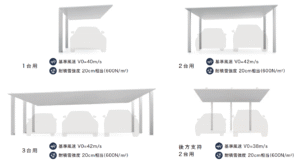 4台分の駐車スペースを、積雪50cmから守る。積雪地域+広い駐車場もスタイリッシュでデザインで。