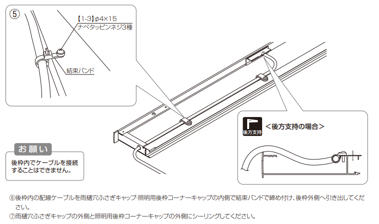 なぜ後付けができないのか。それは、私たちが普段、メーカーの施工説明書(カーポートSC 柱照明(屋外カメラ) 取付説明書など)を見ながら、どのように工事をしているかをご説明すれば、ご理解いただけると思います。