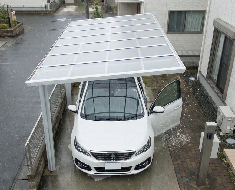 少し金額は上がりますが、見た目がかなり変わります。黒い屋根はモダンな住宅との相性が抜群で、高級感のある印象を与えます。さらに、遮熱性能も通常のポリカーボネートより高いので、真夏の車内温度にも差が出ます。