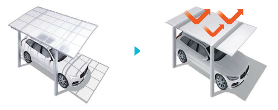 夏の炎天下、ポリカーボネート屋根のカーポートの下と、カーポートSCの下では、体感温度が全く違います。