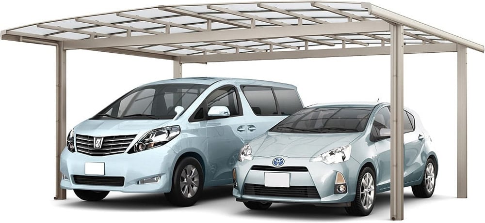 Y合掌タイプは、1台用のカーポートを2つ組み合わせた形で、真ん中に柱が集約されているのが特徴です。柱が中央にあることで、左右で異なるサイズのカーポートを組み合わせることができ、変形した土地でも設置しやすいです。ただし、中央部分に雨や雪が溜まりやすいという欠点があります。