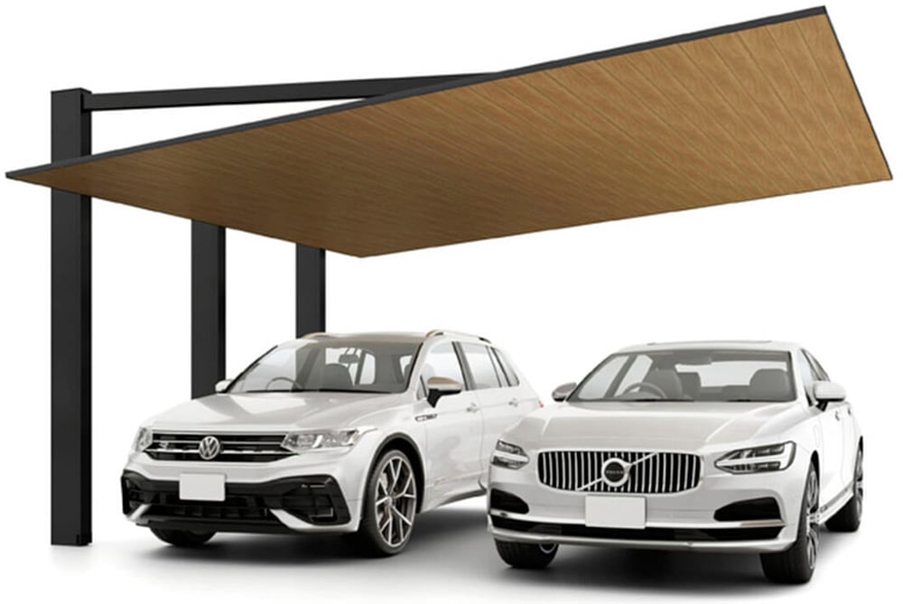 アーキフィールドは、上吊り構造による完全にフラットで広大なルーフが特徴です。オプションで木目調の天井材やダウンライトを組み込むことで、駐車スペースをまるでリビングの延長のような上質な空間に変えることができます。