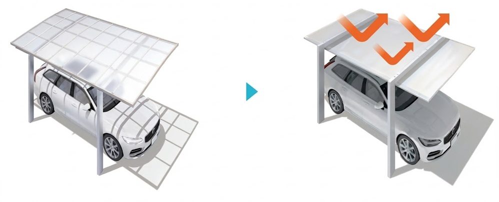 夏場に車に乗り込んだとき、ハンドルが熱くて握れない…なんて経験、ありませんか?シートに座った瞬間に汗が噴き出す、エアコンを全開にしても車内がなかなか冷えない、そんなストレスを感じている方も多いのではないでしょうか。金属屋根なら屋根下は完全な日陰になるので、車内の温度上昇をかなり抑えることができます。