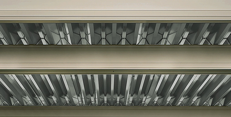 一方、カーポートSW・STは、柱と梁はアルミですが、屋根はスチール(鉄)でできています。いわゆる「折板(せっぱん)カーポート」と呼ばれるもので、ガルバリウム鋼板という非常に強い鉄の板を折り曲げて屋根にしています。このガルバリウム鋼板とは、鉄板にアルミニウム・亜鉛・シリコンのメッキを施したもので、通常の鉄板よりも遥かに錆びにくく、耐久性に優れています。