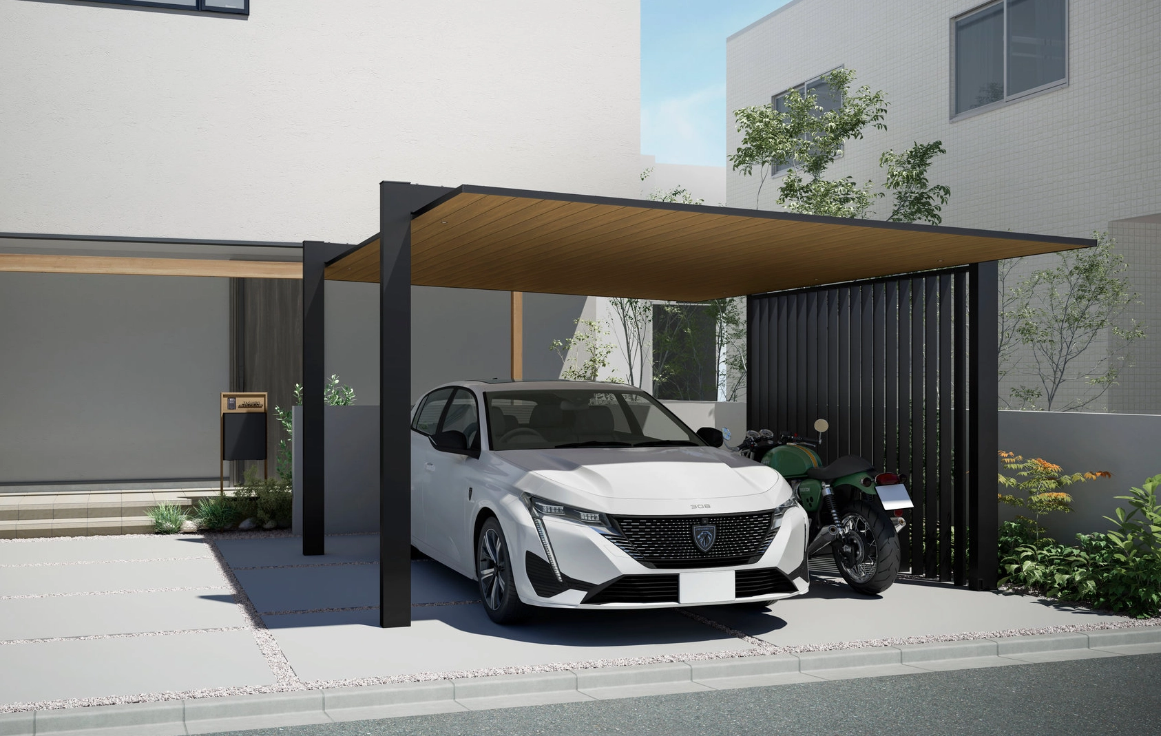 住宅と美しく調和するミニマルなデザイン。屋根と柱だけで構成された、グッドデザイン賞受賞の次世代カーポート。
