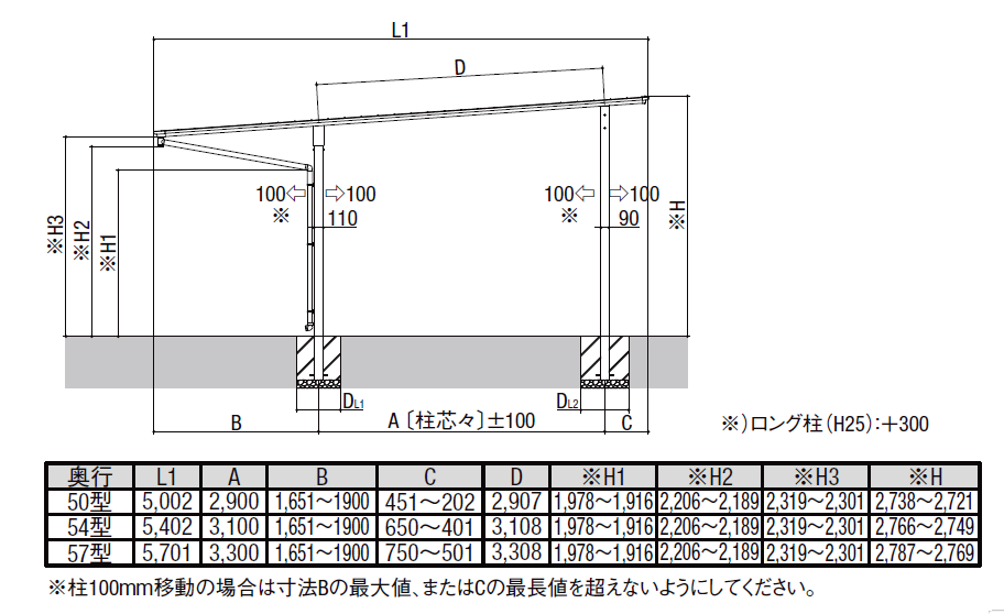 カーポートSW900 2台用 奥行延長